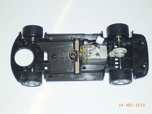 Beim Umbauen zeigt sich, dass die Stummelachse während der Umbauphase Vorteile bietet. Die Vorderachse braucht nicht demontiert werden. Damit entfällt auch das Wiedereinsetzen. Die Lageraufnahmen im Kunststoff werden geschont. Alle Arbeiten am Chassis sind gut machbar. Auch die Positionierung des Schwingarms ist deutlich einfacher. Und wenn der Platz es zuläßt, kann der Schleifer auch weiter vorne plaziert werden. Beim BMW M3 konnte die Position des Schleifers gegenüber dem Evo-Schleifer nahezu beibehalten werden.